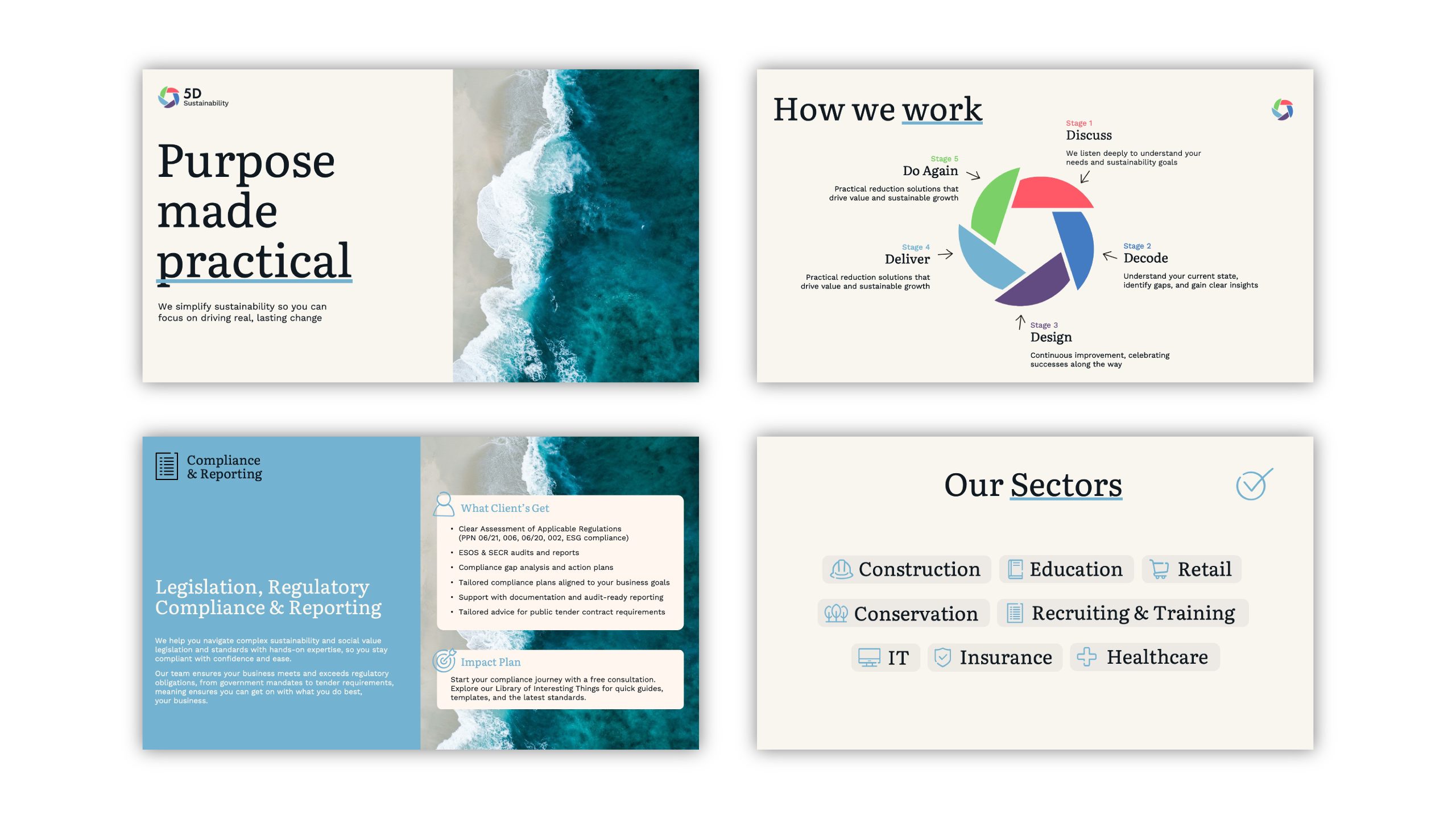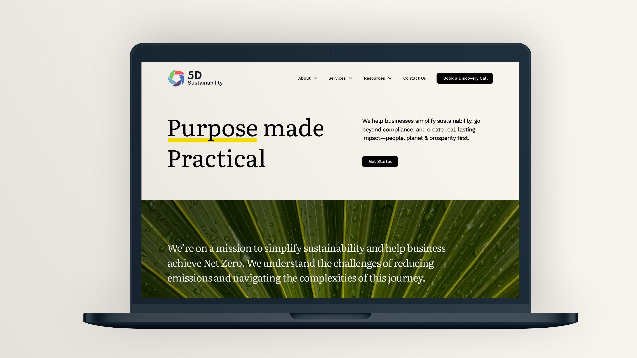 The 5D Sustainability website, designed to reflect our new brand and communicate clearly how we help drive sustainable growth